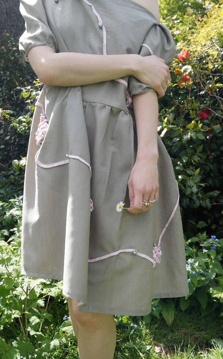 With joy, we present our latest upcycled mini collection- The Luxe. It consists of 4 dresses created from one base design with a unique asymmetrical neckline. The dresses are hand-finished using artisanal techniques. Each dress has a different texture, with elements sewn in the spirit of zero-waste to utilize all scraps. We exclusively used fabrics that already existed, formerly duvet sets and curtains. Our upcycled dress is the perfect choice for environmentally conscious fashionistas. Each piece is unique and example that contemporary design based on a past.