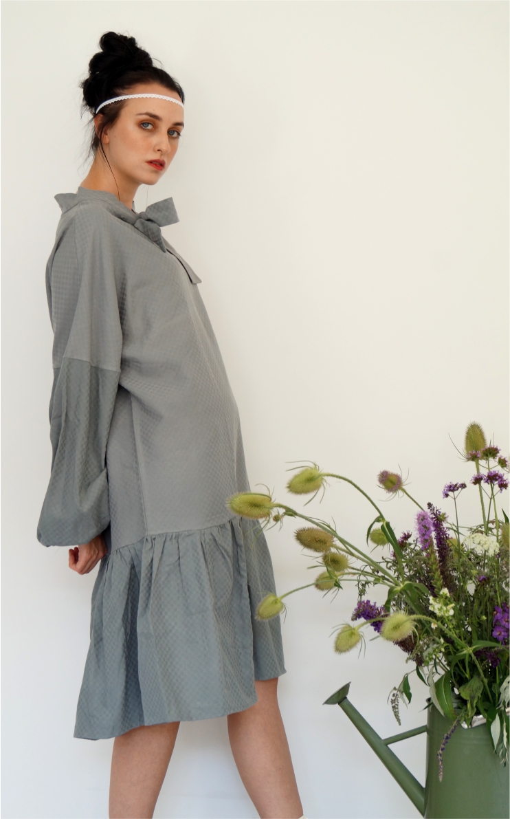 This beautiful sage green dress has been expertly upcycled using repurposed preloved bedding cover.